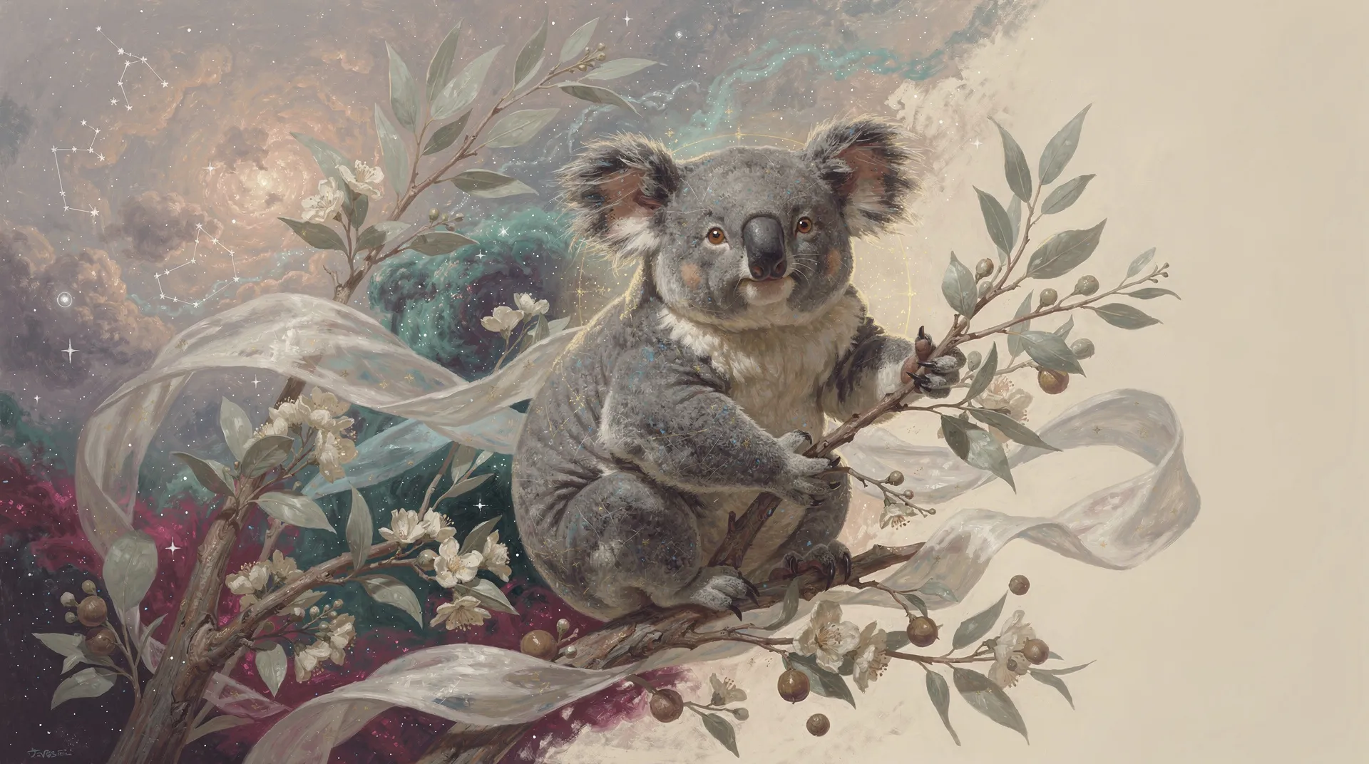 The relationship between the Koala and Eucalyptus may be one of the most profound examples of co-dependence in the archetypal landscape. Eucalyptus is not merely sustenance or shelter; it is, perhaps, the very architecture of the Koala’s worldview, a singular, sacred text from which all meaning is derived. To the Koala, the world beyond its chosen branch could seem a blurry abstraction, a rumor of elsewhere. This bond suggests a life where deep specialization becomes a form of monastic devotion, a universe unto itself where the scent of a particular leaf is both the memory of yesterday and the promise of tomorrow. It is a partnership that speaks to the peace found within limits, but also, one might say, to the inherent vulnerability of building one’s entire existence upon a single, fragile truth.