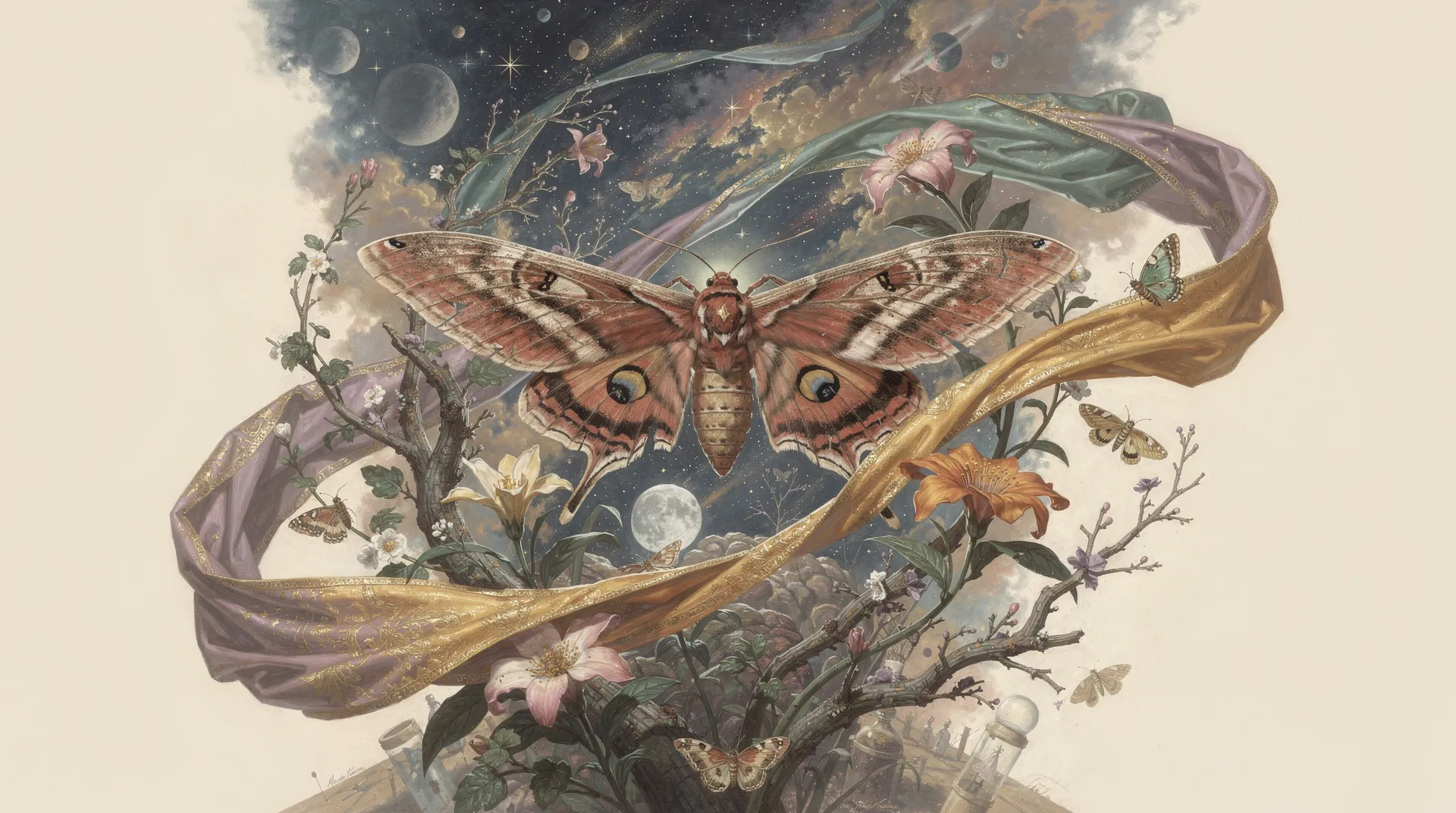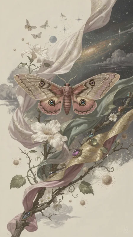 If the Flame is a feverish, immediate passion, the Moon is a cool and ancient compass, the original love the Moth has perhaps forsaken. The Moon’s light offers no heat, no promise of ecstatic transformation, only a silvered, silent guidance. This relationship might speak to a schism within the archetype's soul: the instinctual, inherited wisdom of the lunar pull versus the incandescent, modern lure of the artificial fire. The Moth, fluttering erratically in the night, could be a creature caught between two devotions—one to the vast, serene, and predictable cosmos, and the other to the chaotic, brilliant, and ultimately annihilating spectacle of the immediate. The Moon’s gentle light may represent a path of survival and quiet contemplation, a path that has become almost invisible in the shadow of the Flame’s shout.