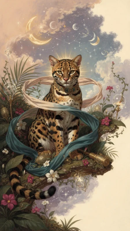 The Ocelot, a creature of the night, embodies mystery and stealth. Its spotted coat, a mosaic of shadow and light, may reflect the duality within us all: the seen and unseen, the conscious and subconscious. In the tapestry of personal mythology, the Ocelot could represent the power of observation, the wisdom of silence, the courage to move through life unseen yet impactful. The Ocelot spirit animal may remind us that true strength lies not always in brute force, but in discerning when to reveal oneself, when to blend in. It is the guardian of secrets, the keeper of inner wisdom.