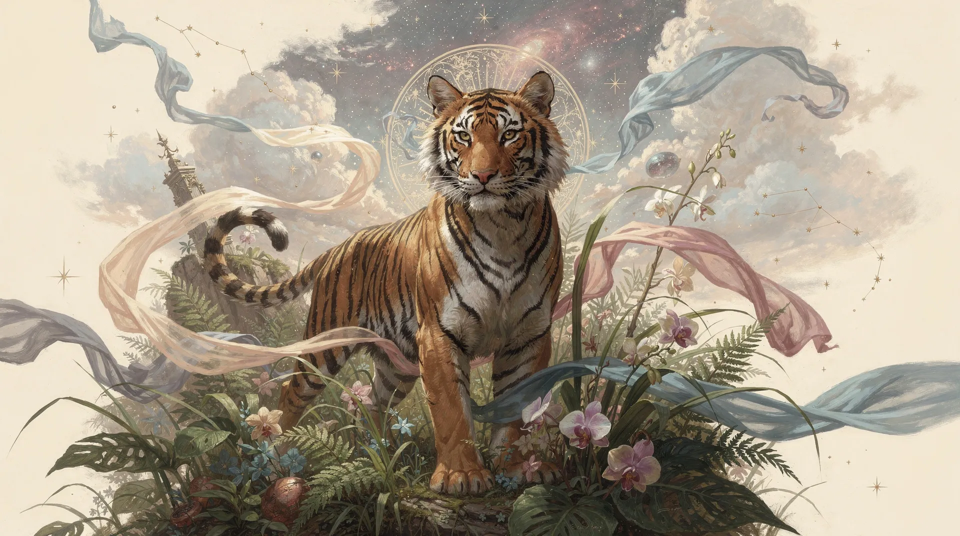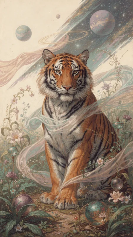 The Tiger's stripes, like the unique markings of our own lives, tell a story of resilience and survival. Each stripe could be seen as a challenge overcome, a lesson learned, a mark of experience etched onto our souls. Perhaps the Tiger calls us to embrace these marks, to see them not as scars but as testaments to our journey, proof of our capacity to endure and emerge stronger.