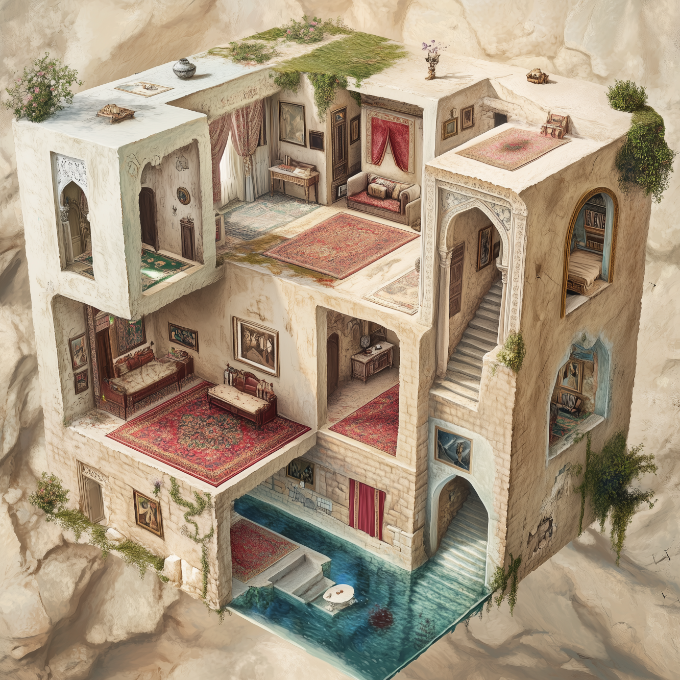 Core memories might manifest as foundation stones, while formative relationships become the pillars that support upper structures. Conscious thought occurs in well-lit chambers, while dreams and intuitions emerge from dimly lit tunnels, hidden caves, and dank basements. Some spaces remain accessible and frequently visited, while others—containing repressed experiences or undeveloped potential—require special keys to unlock.